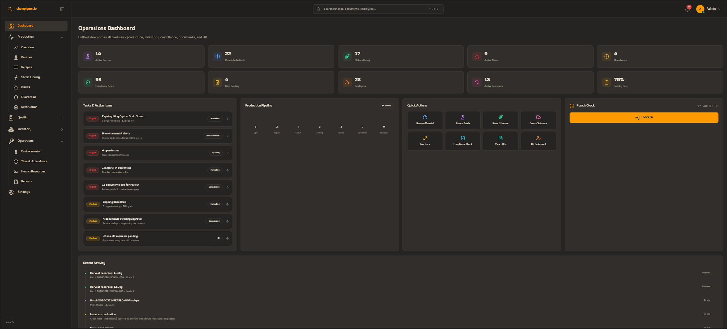 This isn’t generic farm software. It’s built specifically around the mushroom lifecycle. Every feature is crafted to match the way mushroom farms actually operate.